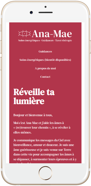 Ana-Mae est tarot-thérapeute. Elle avait besoin d’un site internet pour présenter son activité et permettre à ses clients de réserver des séances. – Création du site sous Wordpress – Création du logo et de la charte graphique – Intégration module de réservation
